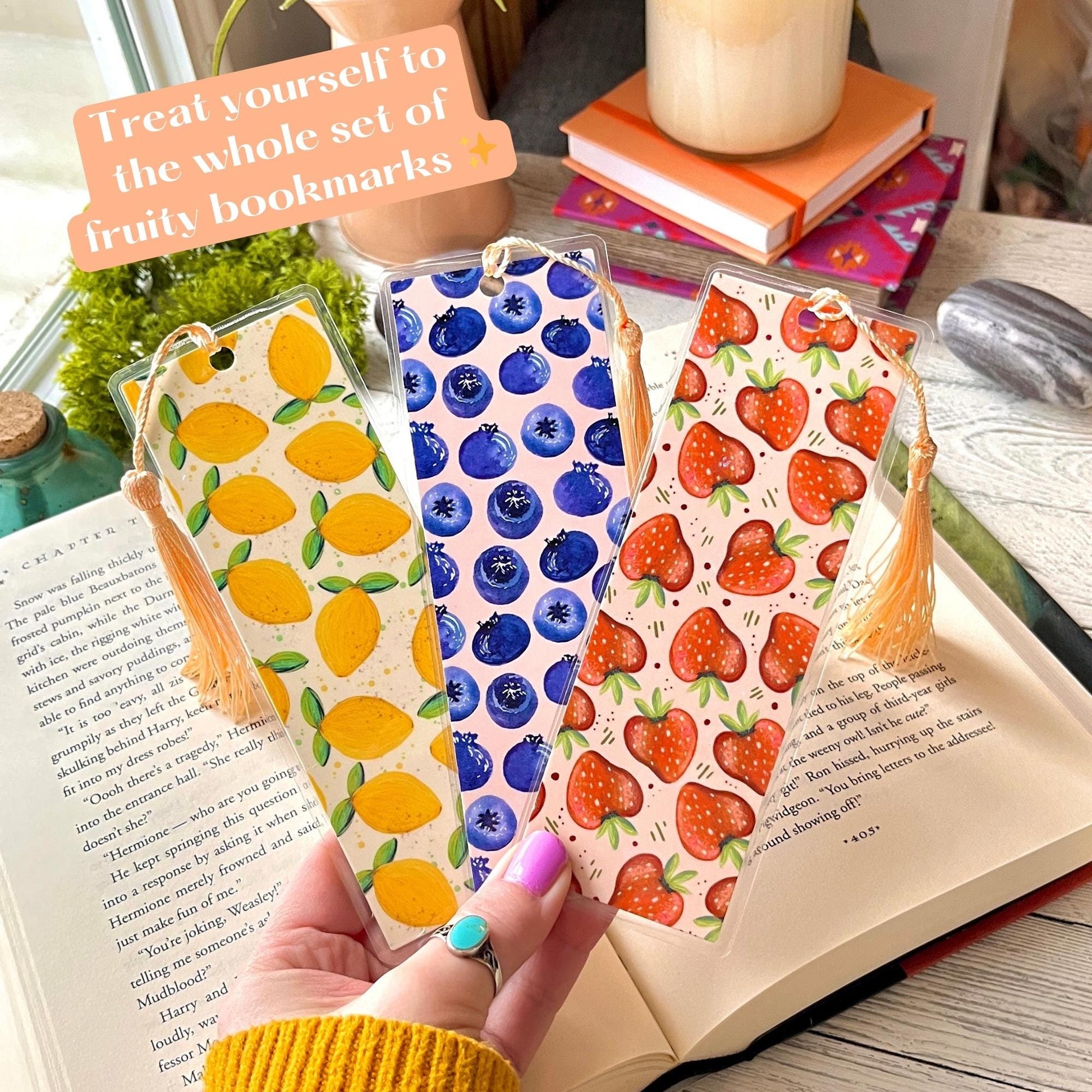 This bundle of 3 bookmarks celebrates one of the best things about Summer... fresh fruit and citrus! So if you love picking Summer berries, adding a citrusy splash to your drinks, a slow cottagecore lifestyle, and reading in the warm afternoon sun... this bookmark set is totally your vibe. 😊