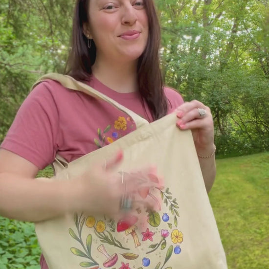 📚 What kinds of books would you fill this fall foraging cottage core organic cotton tote bag with?