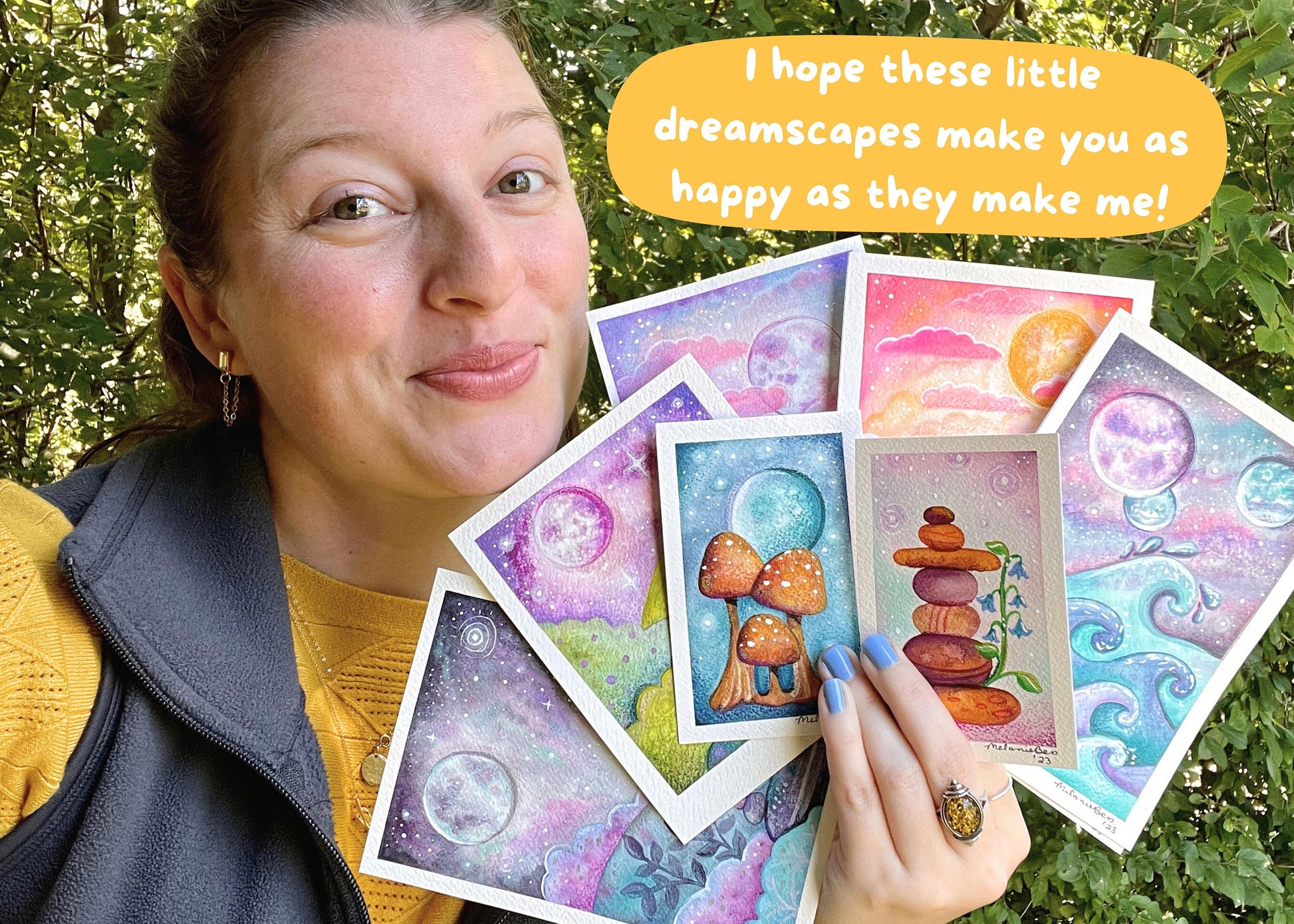 Original Dreamy Cloudsurfing Painting - 4.5 x 6.5 inches