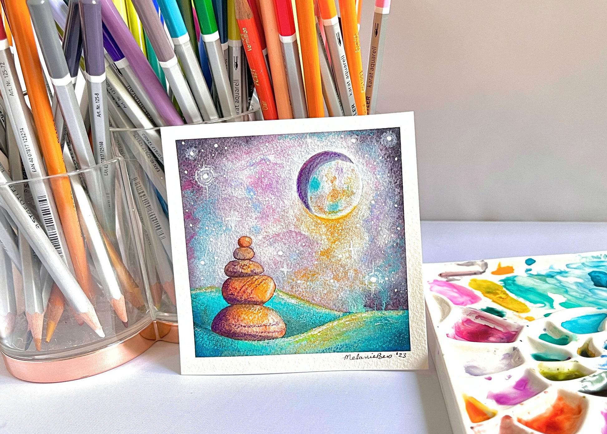Original Watercolor Dreamscape · Small Moonlit Landscape