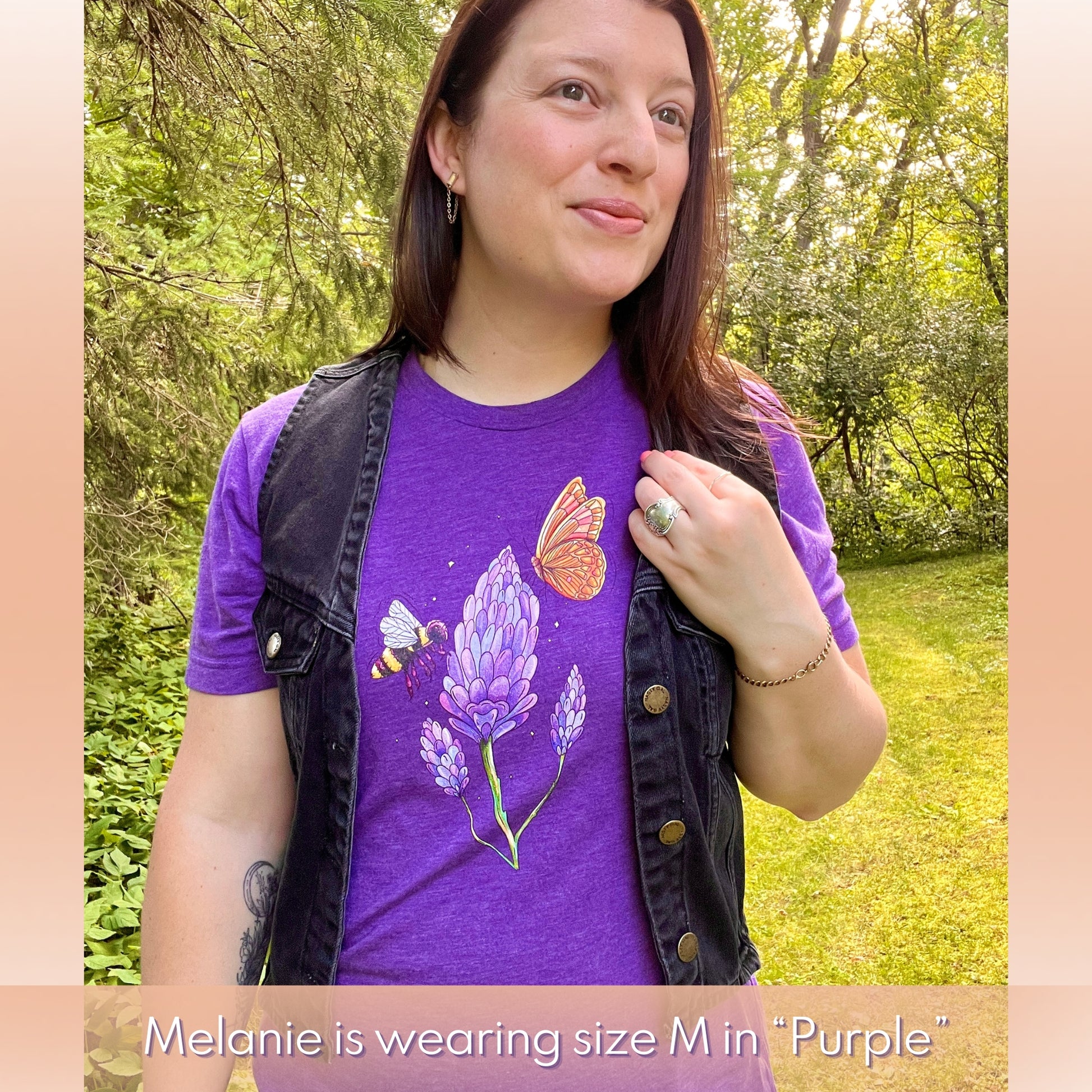 This sweet and soft t-shirt comes in 2 cute colors: purple and mustard.